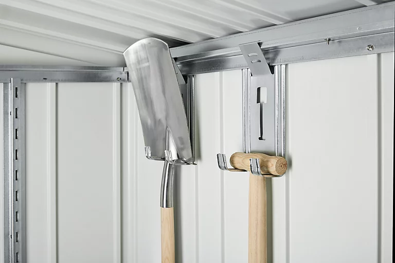 Pour assurer sa longévité, le support d´outils est en acier galvanisé à chaud. Utiliser le support d´outils pour suspendre bêche, râteau, tuyaux, outils etc..